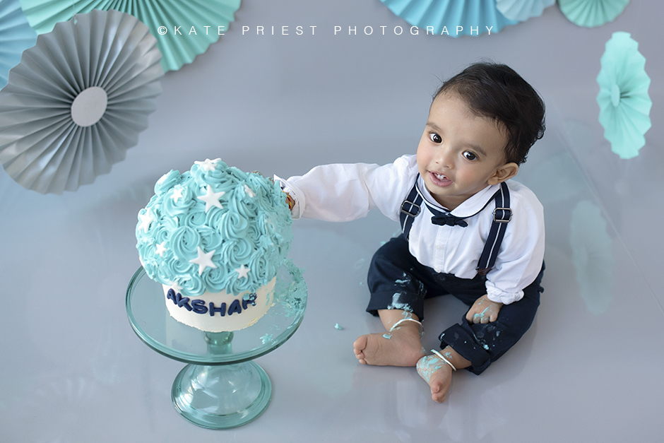 Loved meeting Akshar and his family. His Mum and Dad are from Nepal so I enjoyed hearing about their country and reminded me of my South East Asia travels. It took a little while for Akshar to start eating his cake, but with a little bit of encouragement he soon started to enjoy his 1st cake smash party.